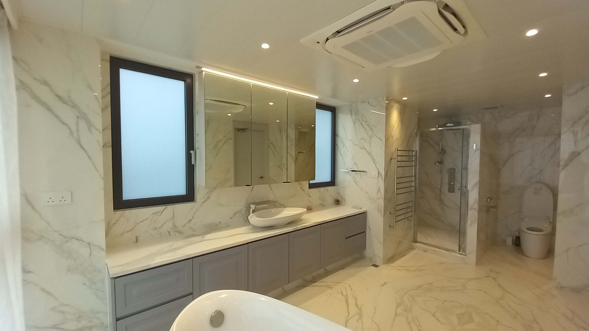 Porcelain Tiles, Retractable seatings, Lockers